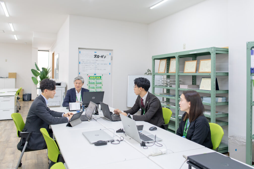 阪本:入社した頃から「気分で仕事をしない人」なんだなと思っていました。忙しかったり、疲れていたりすると、言葉がきつくなってしまう人もいると思うんですが、月東さんはそれがない。いつもきちんとスケジュールを組んでいて、時間がないときでも焦っている感じが相手に伝わらないんです。お客様に対しても、所員に対しても、姿勢が変わらない。だからこそ話しやすいし、困ったときも相談しやすい。こういうリーダーがいてくれるのは、本当に心強いですね。