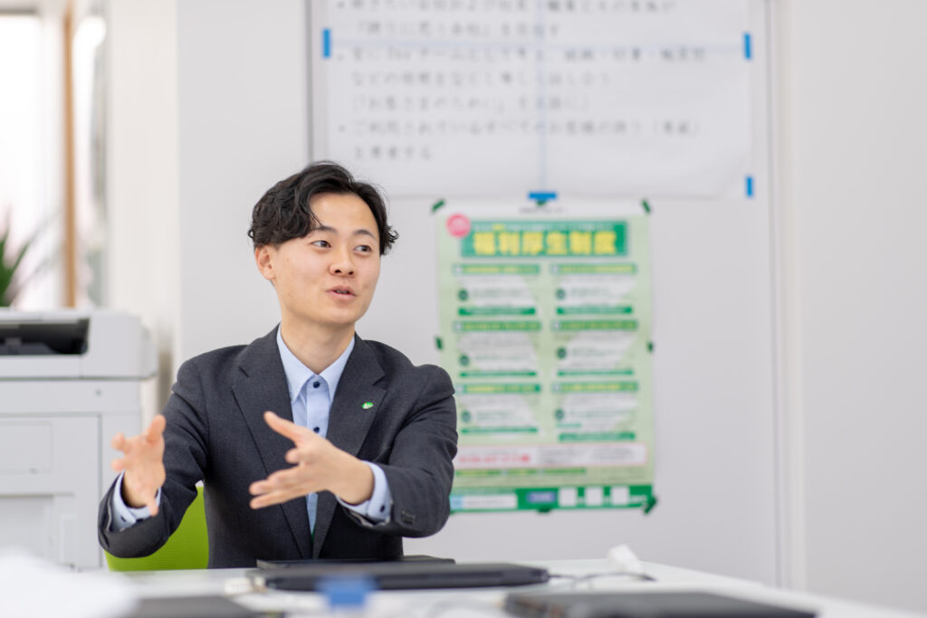 営業って個々に利用者さんを抱えているので、どうしても個人プレーに走っちゃうところがあるんです。だから納品の際に重たいもの、大きいものがある場合は、担当関係なく「みんなでやりましょう!」っていう声がけをしたり。普段からみんなを巻き込んで、イレギュラーな時でもカバーしあえる体制をつくることを心がけています。